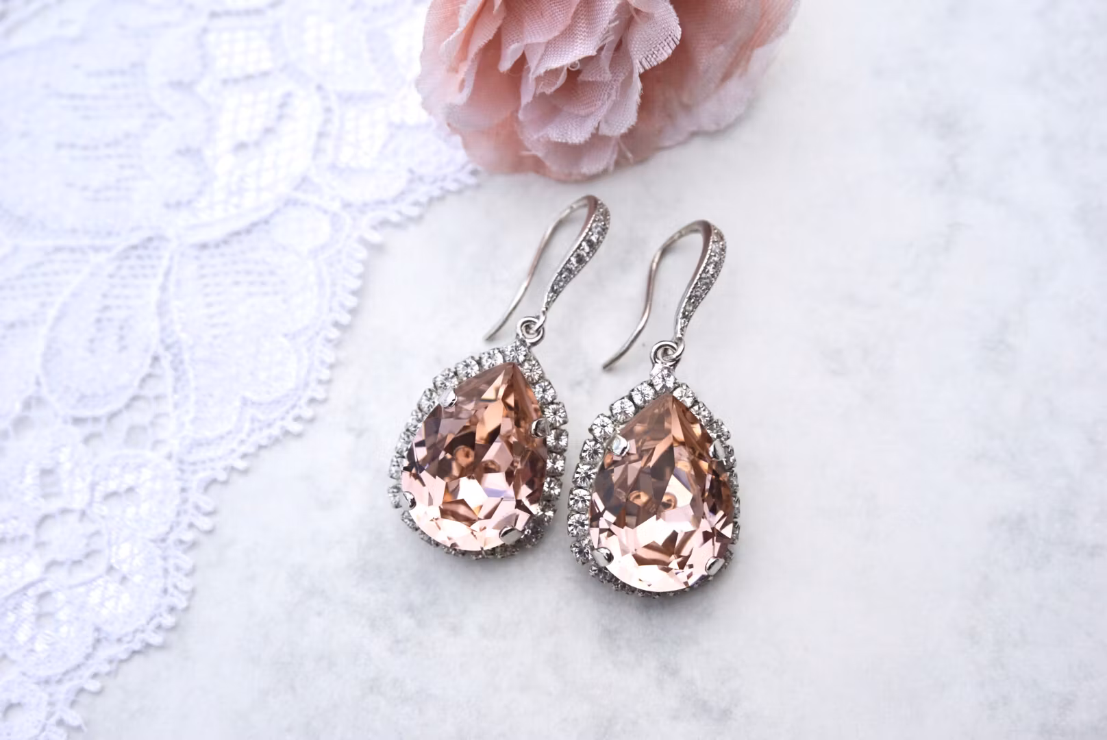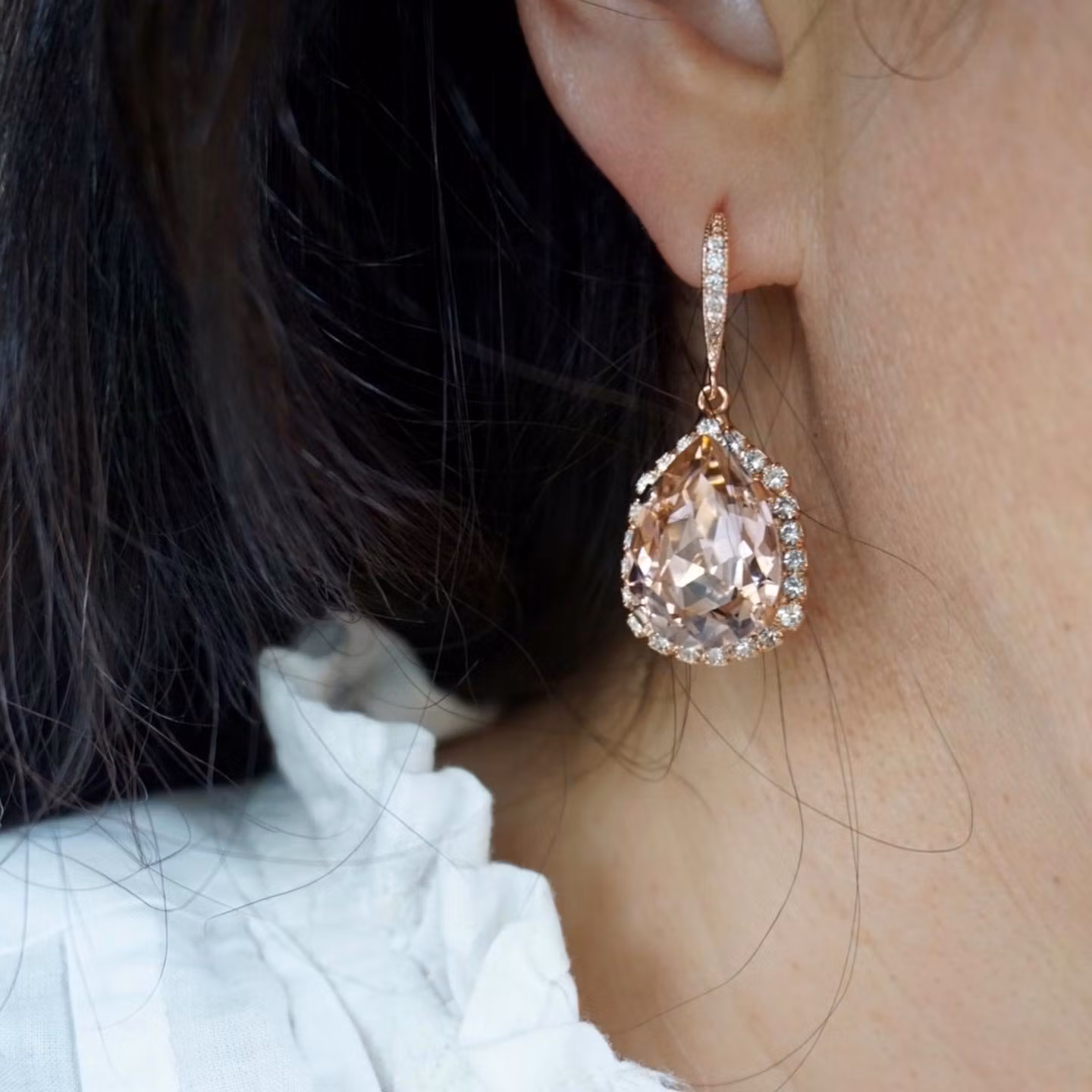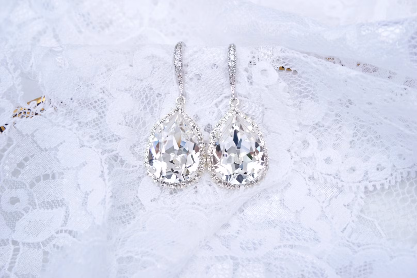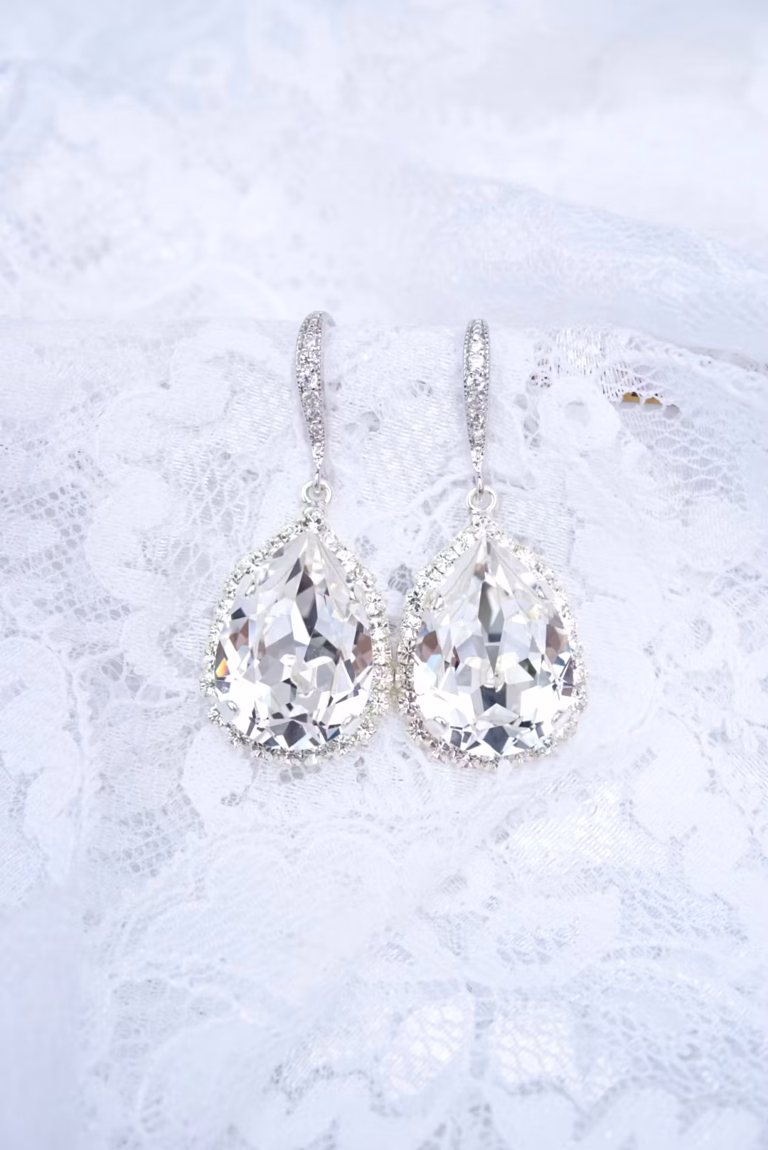 De flotteste øredobbene, passer til anledningene når du virkelig vil skinne! Her i rhodium, og kanten rundt dråpen består av bittesmå blanke krystaller. I midten er en 18x13mm stor krystall. Alt er håndlaget.