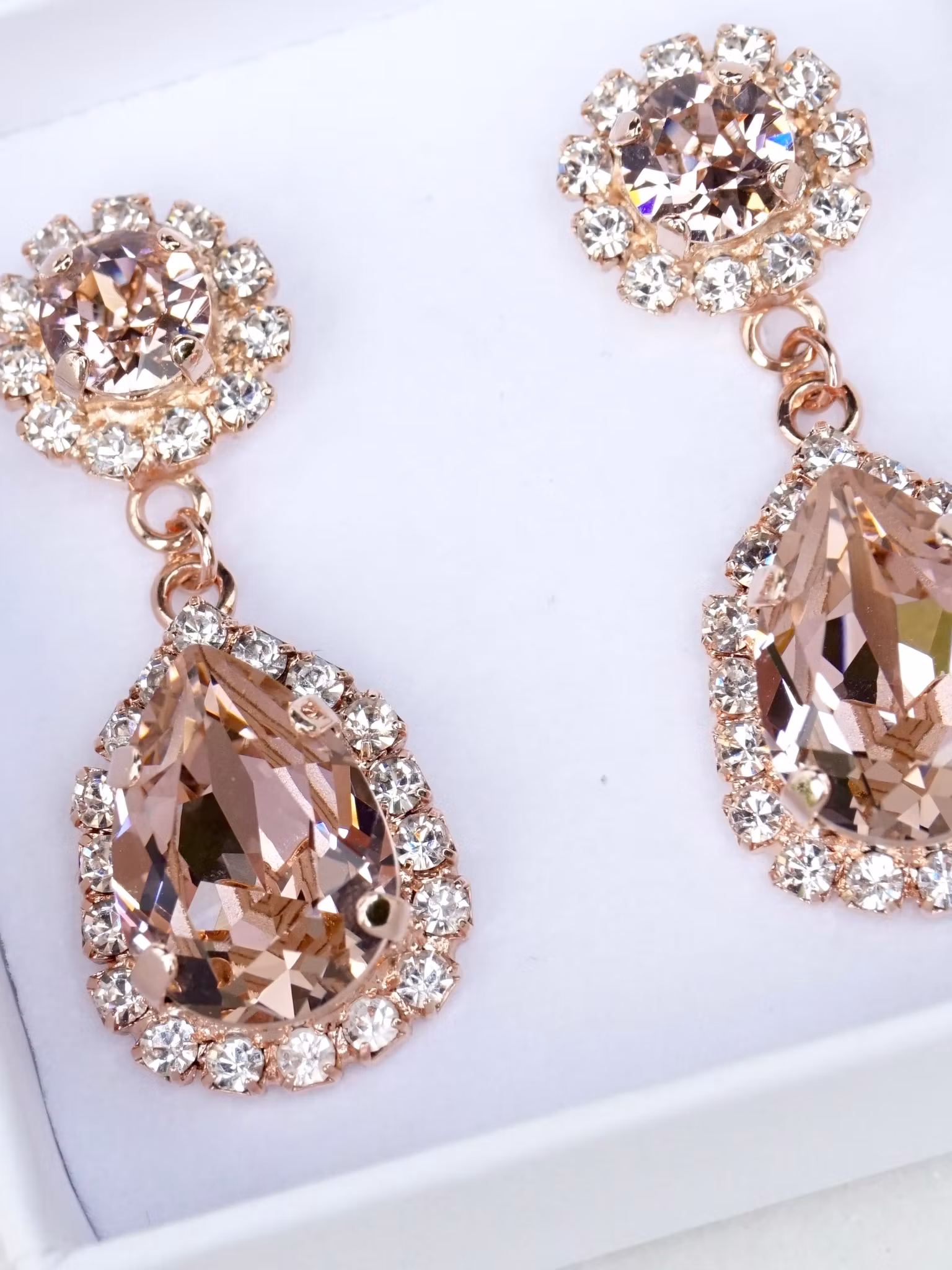 Disse er i rosegull med krystallfargen Vintage Rose, ta kontakt for andre farger! Slike kan også lages i større versjon.