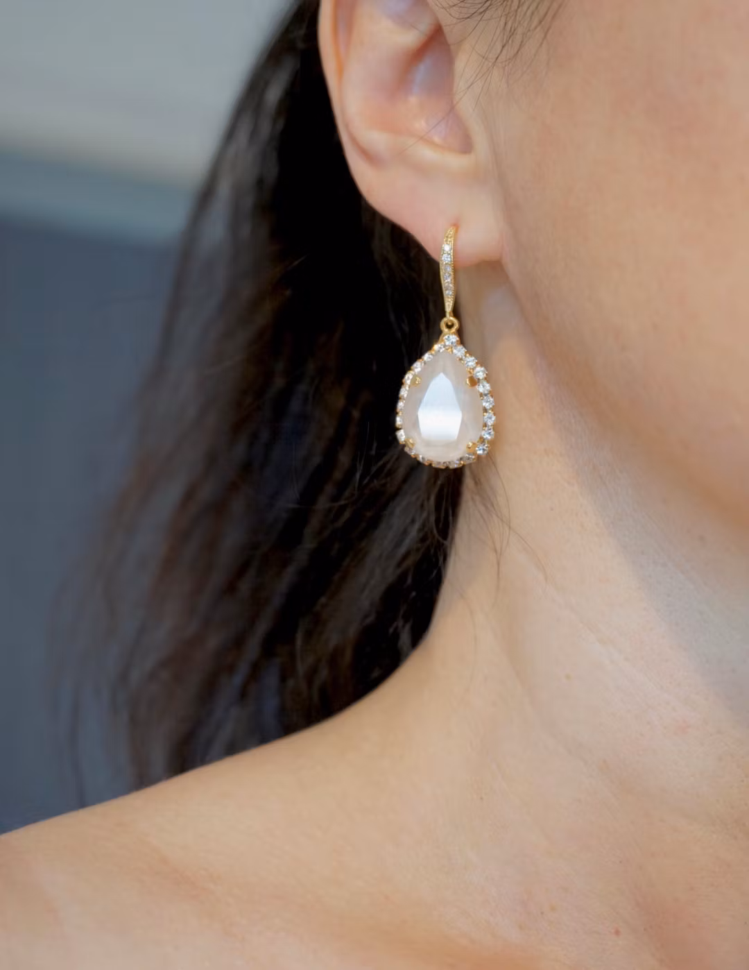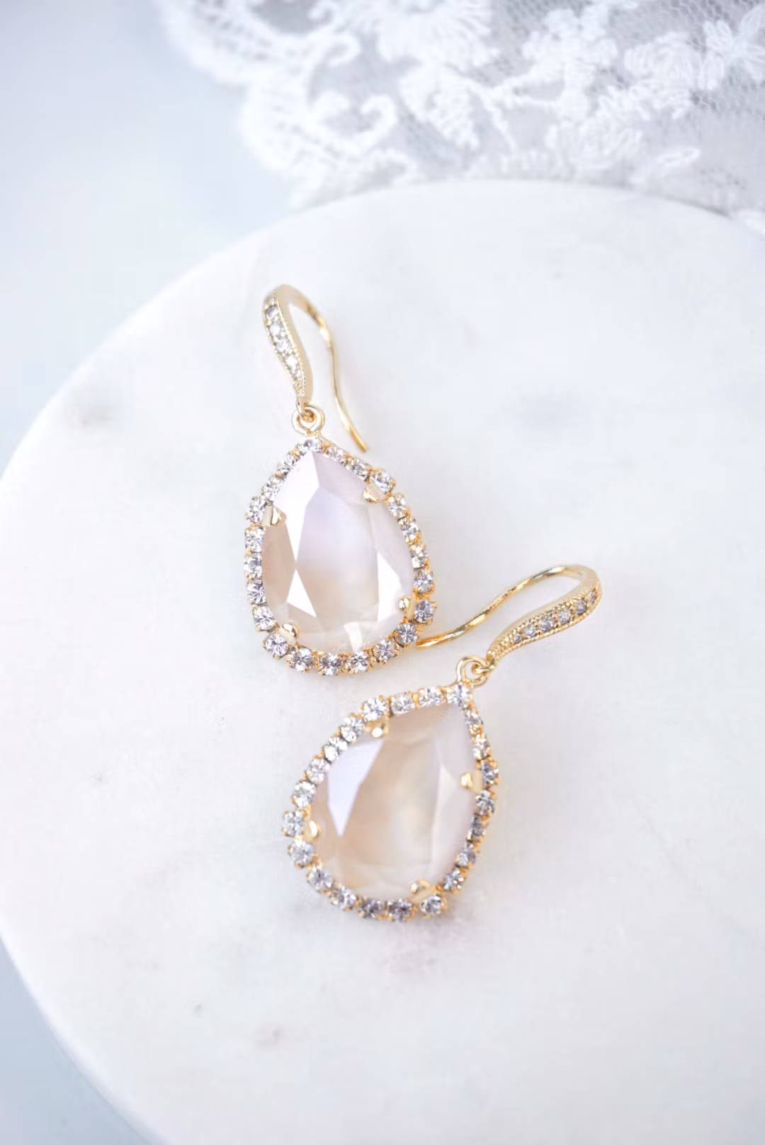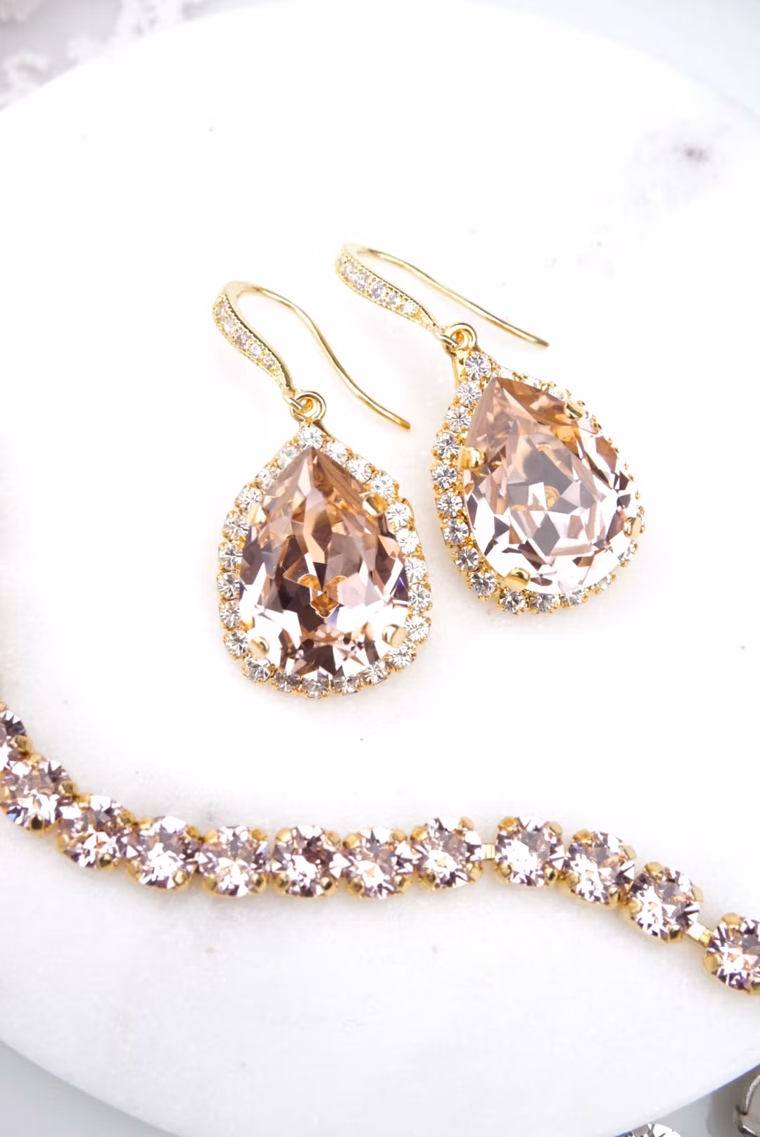 De flotteste øredobbene, passer til anledningene når du virkelig vil skinne! Her i gull, og kanten rundt dråpen består av bittesmå blanke krystaller. I midten er en 18x13mm stor krystall. Alt er håndlaget.