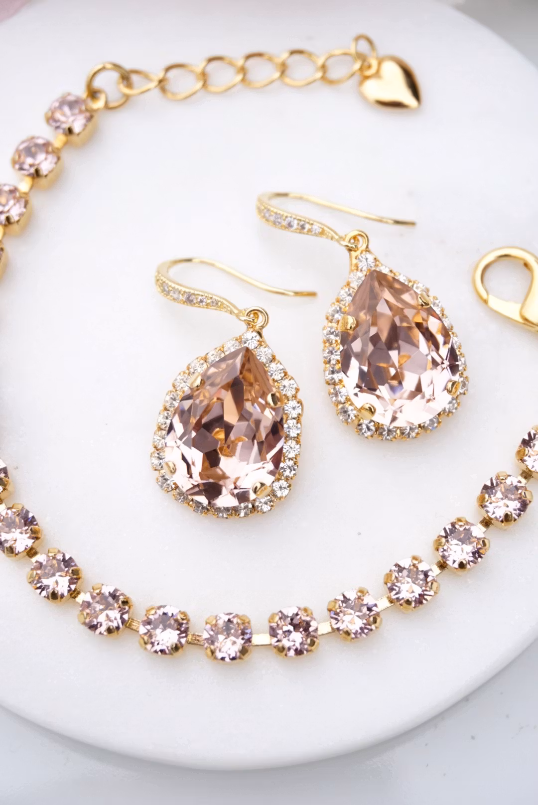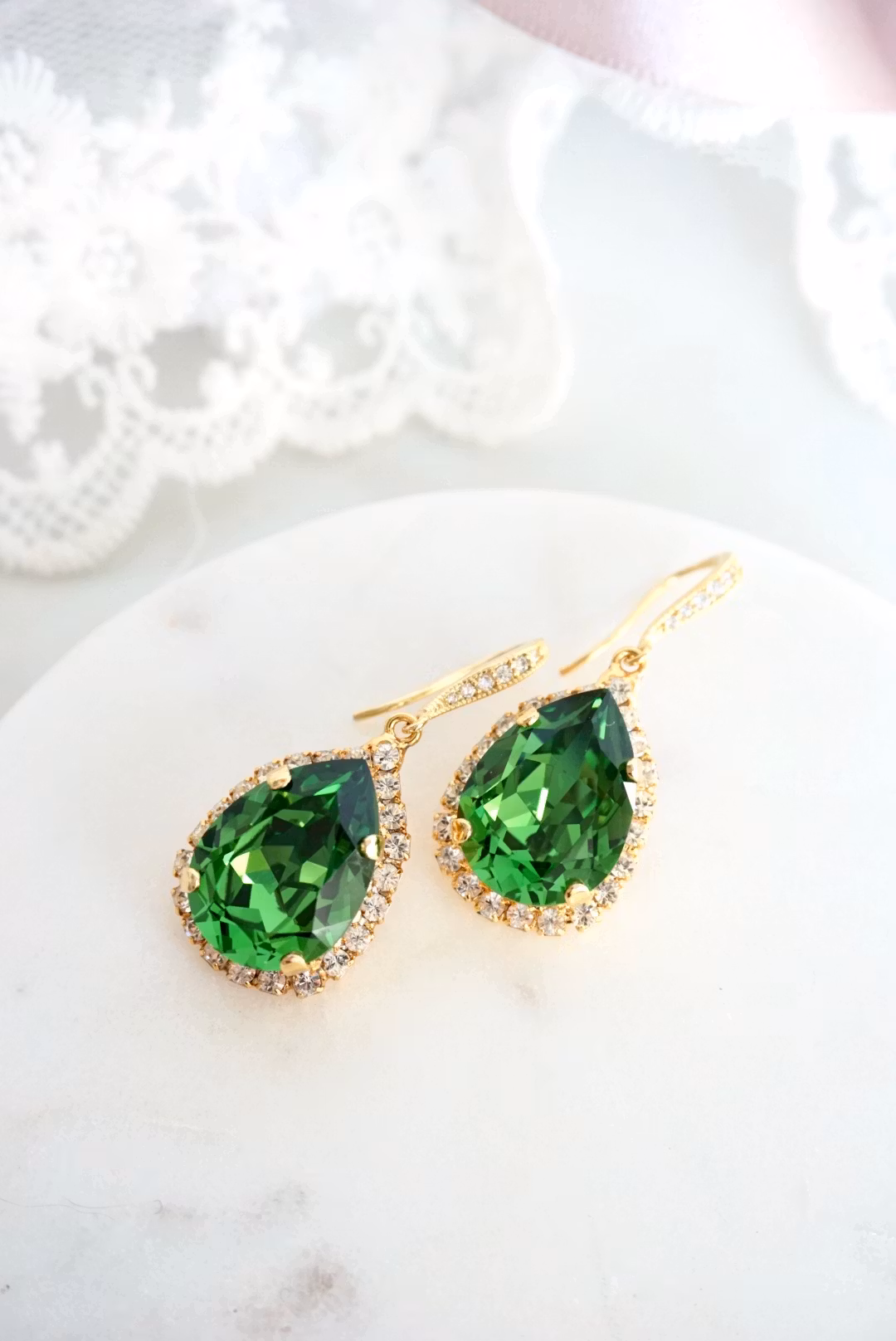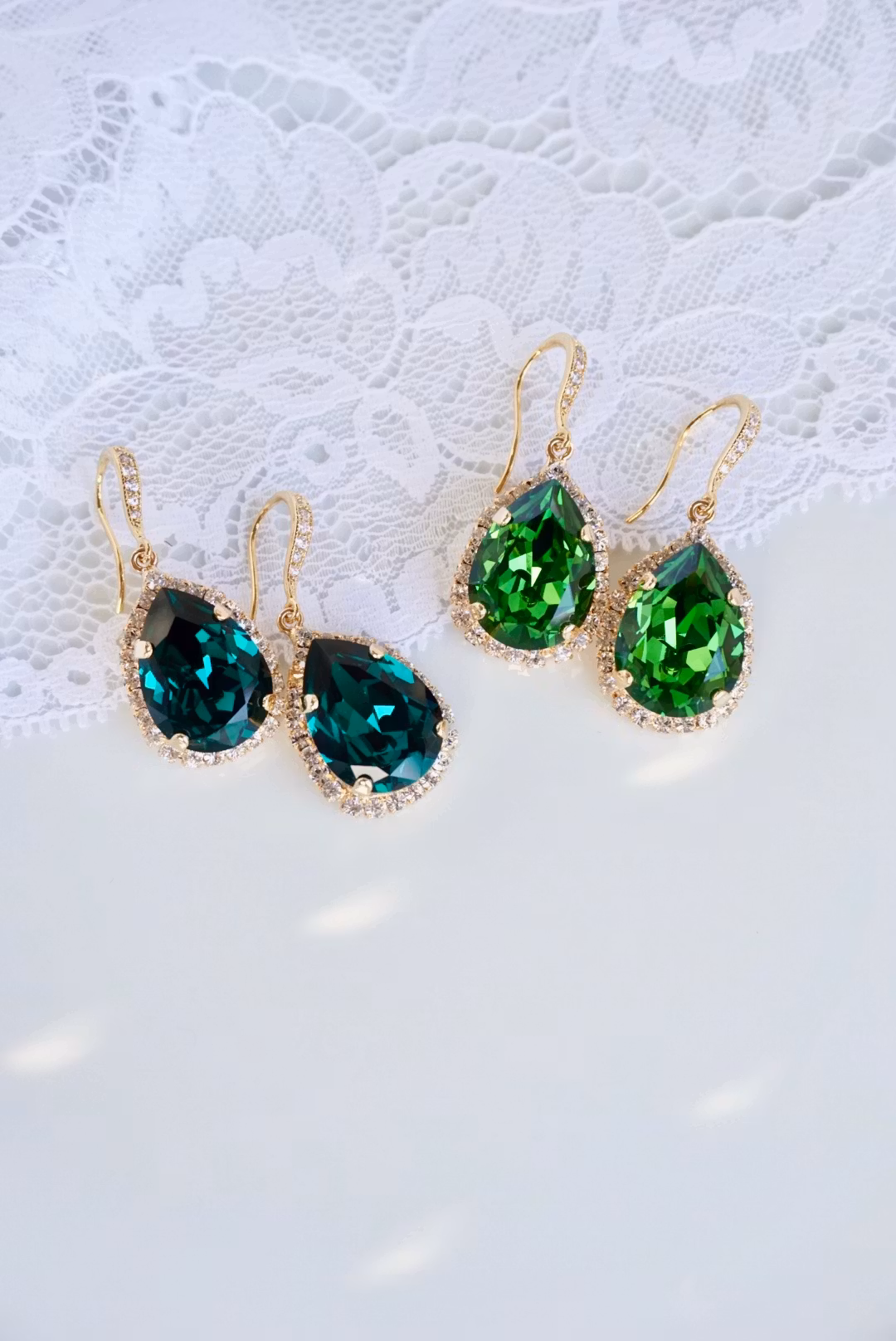 De flotteste øredobbene, passer til anledningene når du virkelig vil skinne! Her i gull, og kanten rundt dråpen består av bittesmå blanke krystaller. I midten er en 18x13mm stor krystall. Alt er håndlaget.