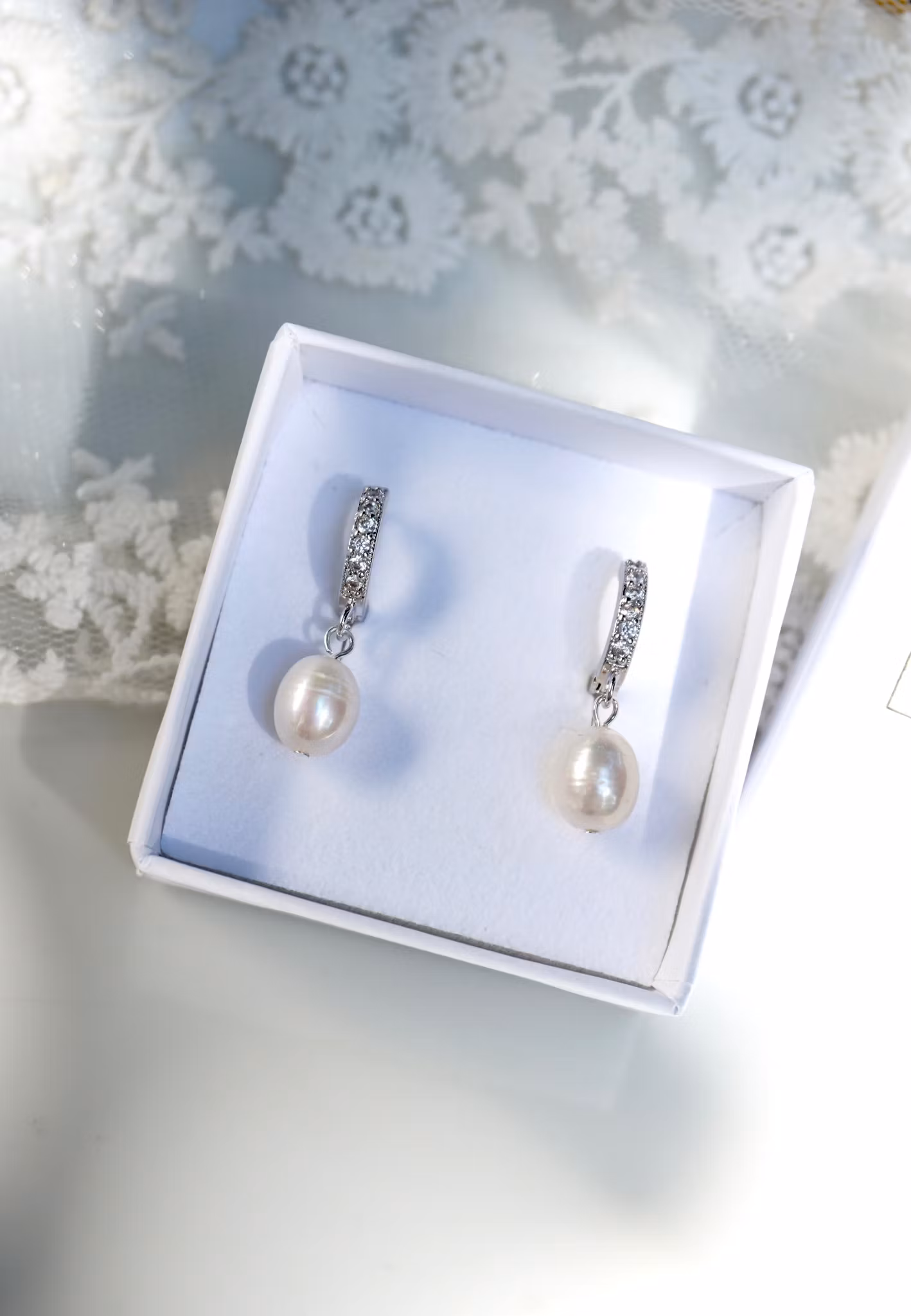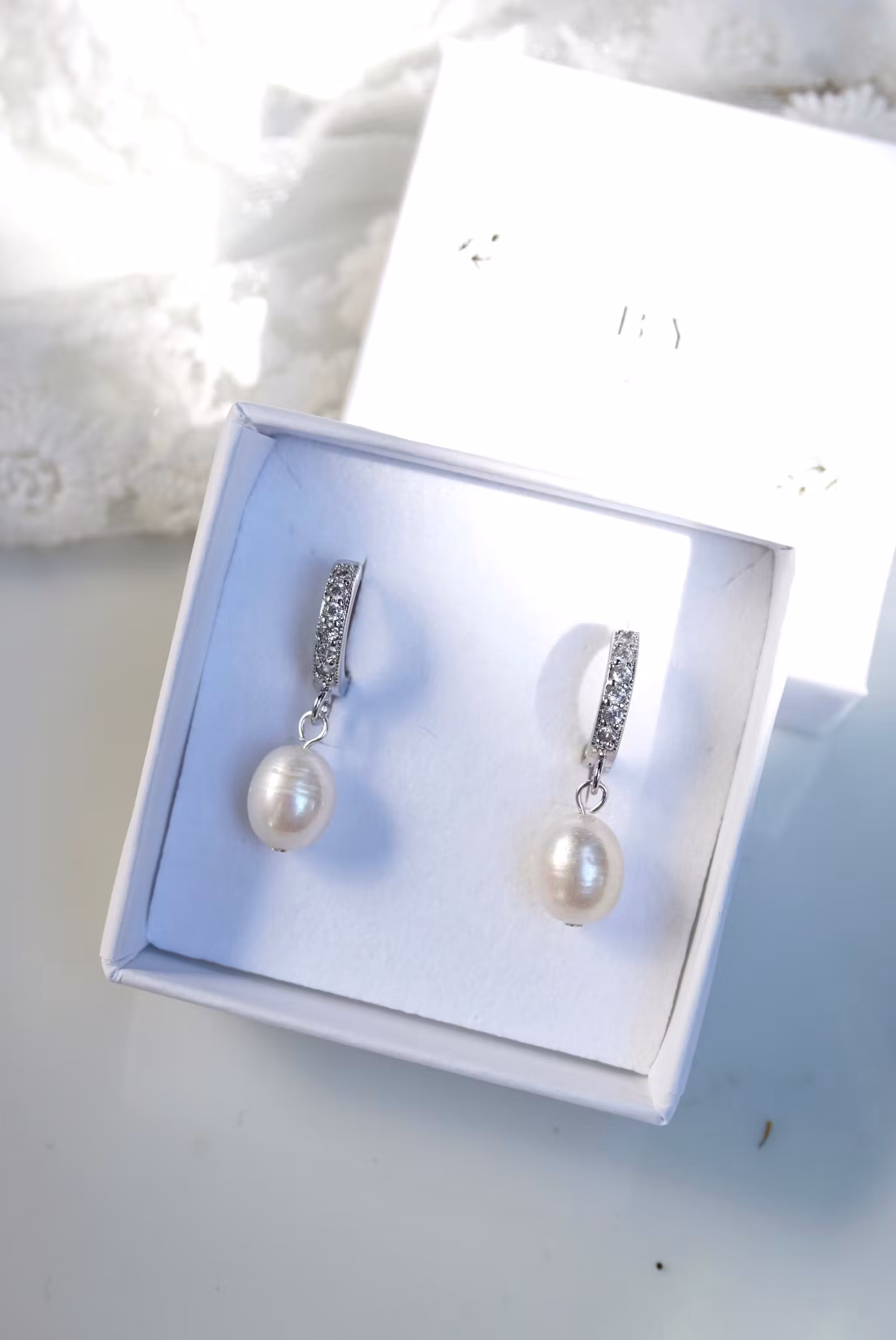 Søte små øreringer med en liten hvit ferskvannsperle (ca 9mm) og Zirconia i toppen!
