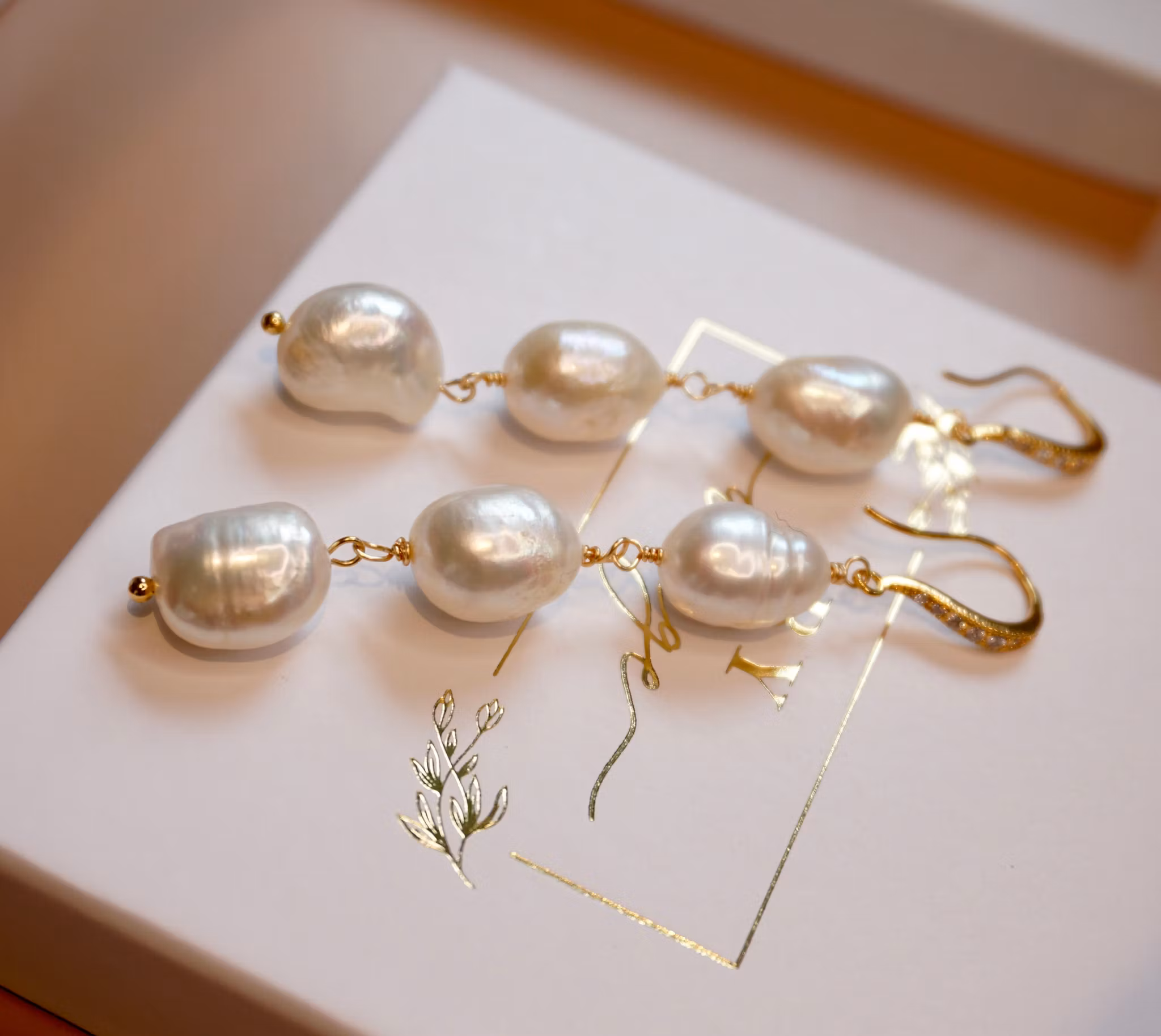 Flotte ujevne perler, fin glans. Kan også bestilles med to perler på rad, se annen artikkel.