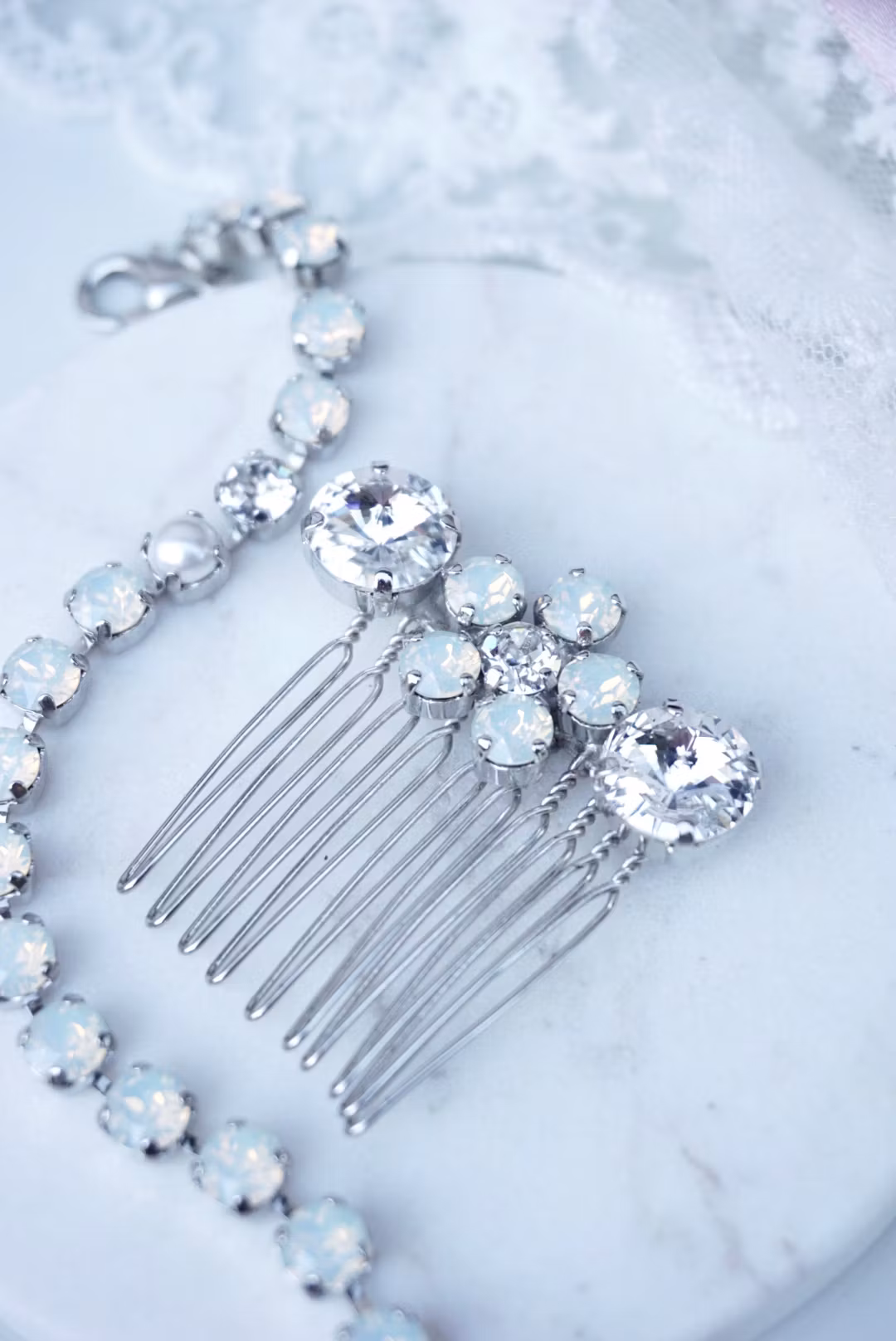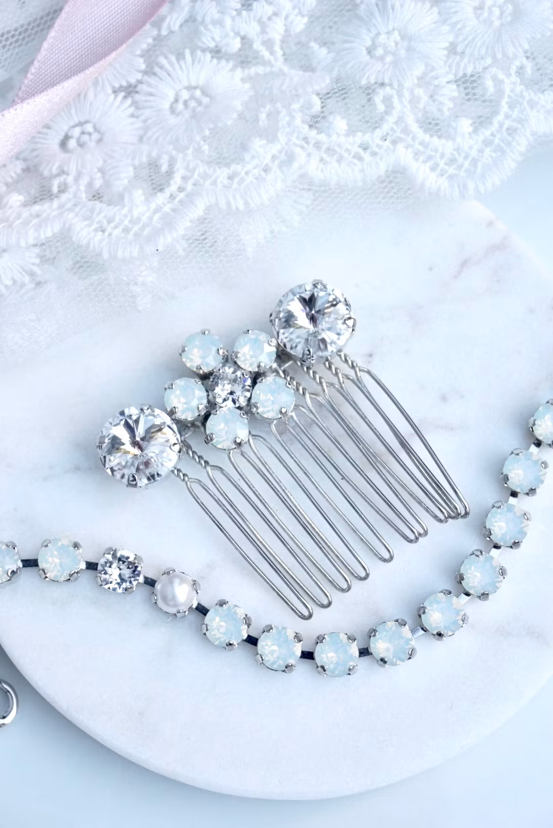 Kan kombineres med andre smykker i White Opal, feks Musetta øredobber eller hårkam som på bildet.