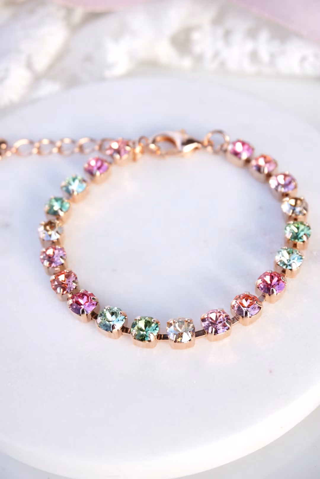 Her i en sommerlig blanding av forskjellige rosa- og grønnfarger i rosegullinnfatning!
