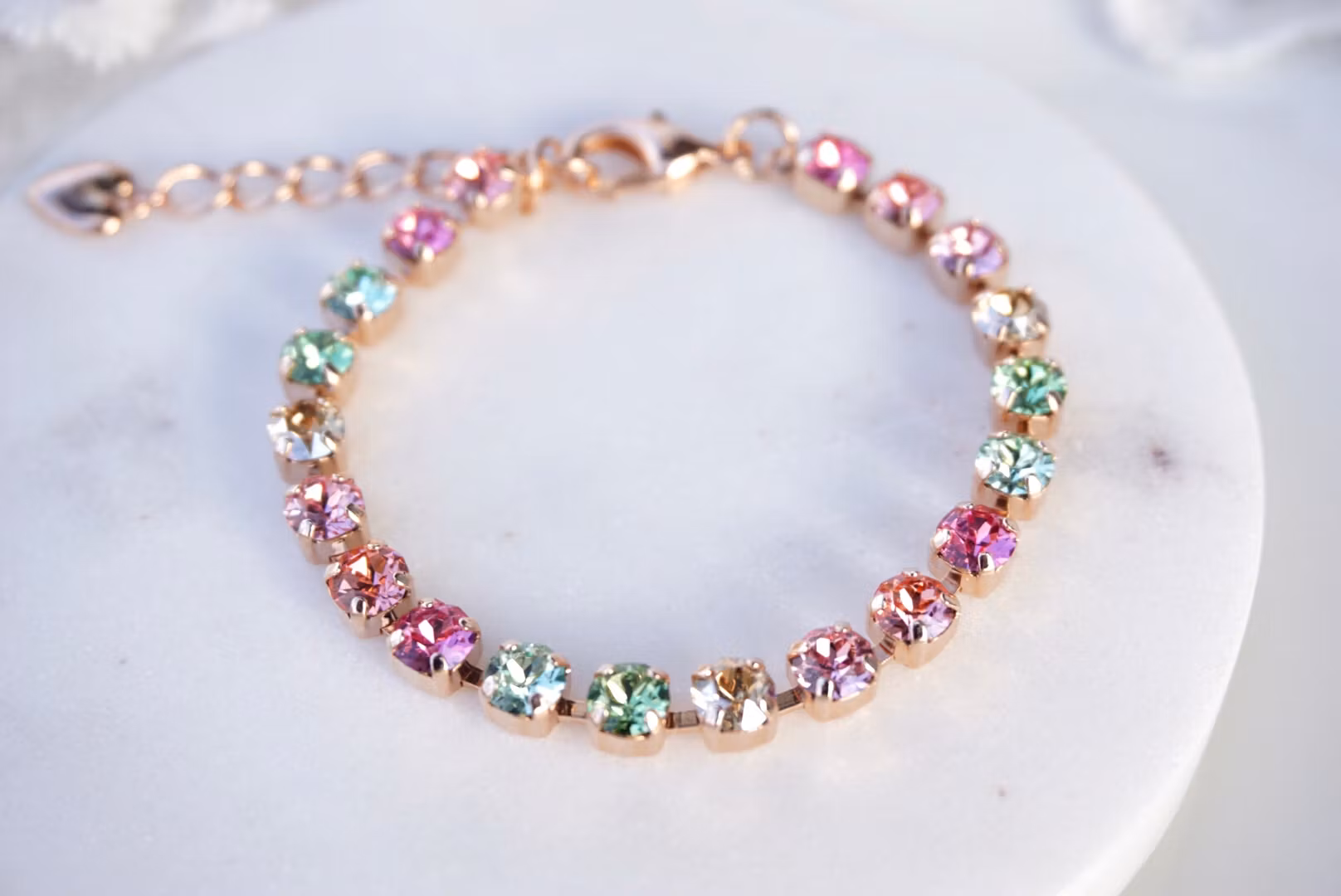 Vakkert tynt krystallarmbånd med små krystaller som er 5,5mm brede. Den er 16,5 cm lang og trenger du lenger så setter jeg på ekstralenke.