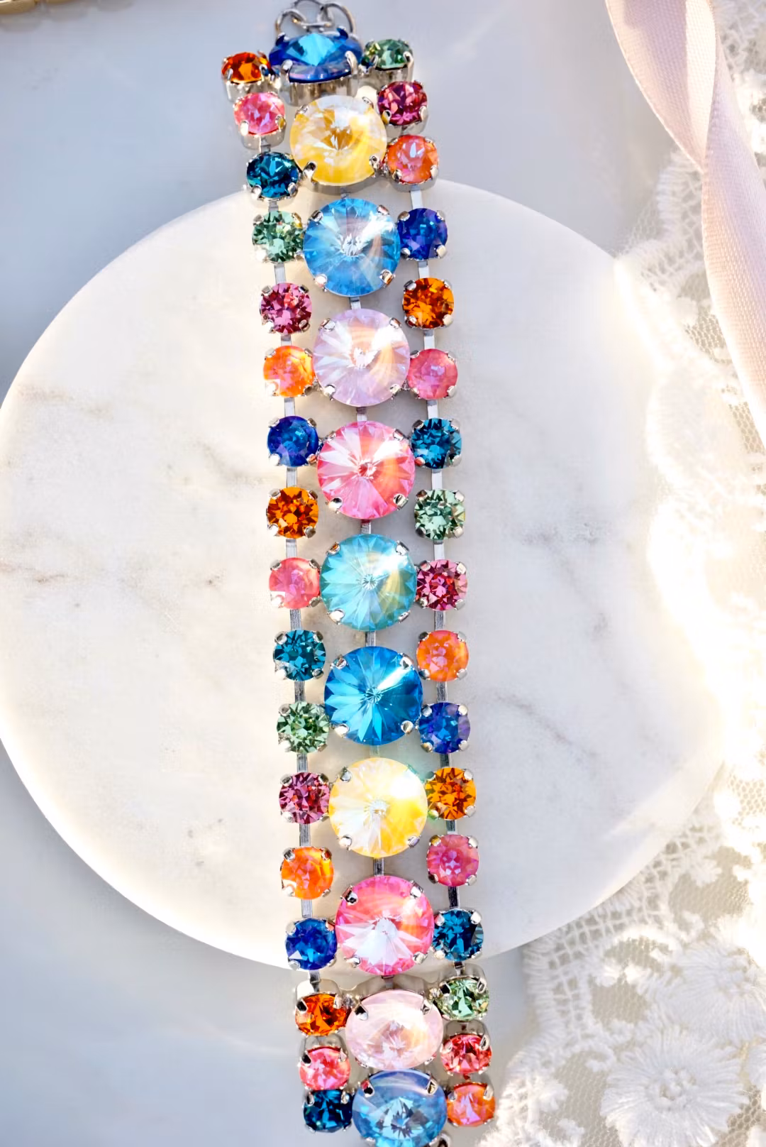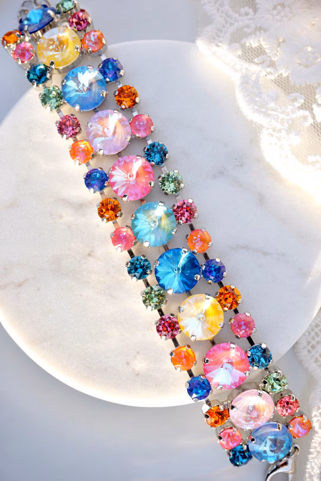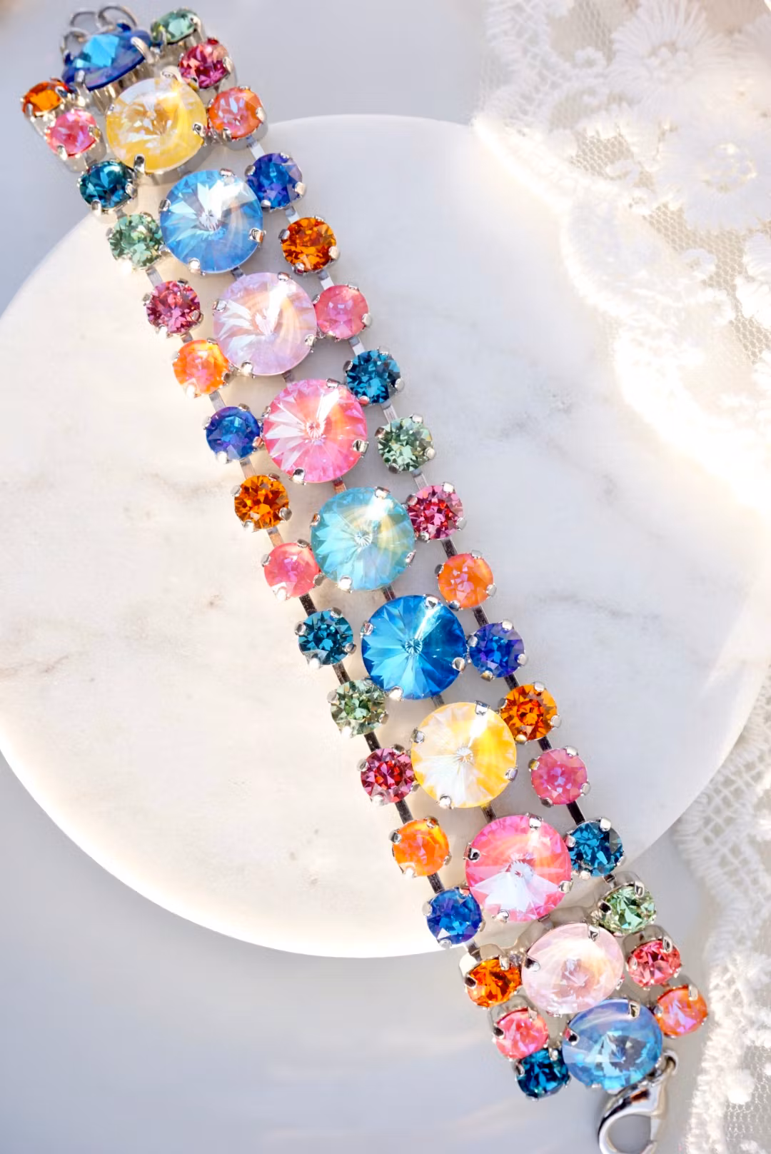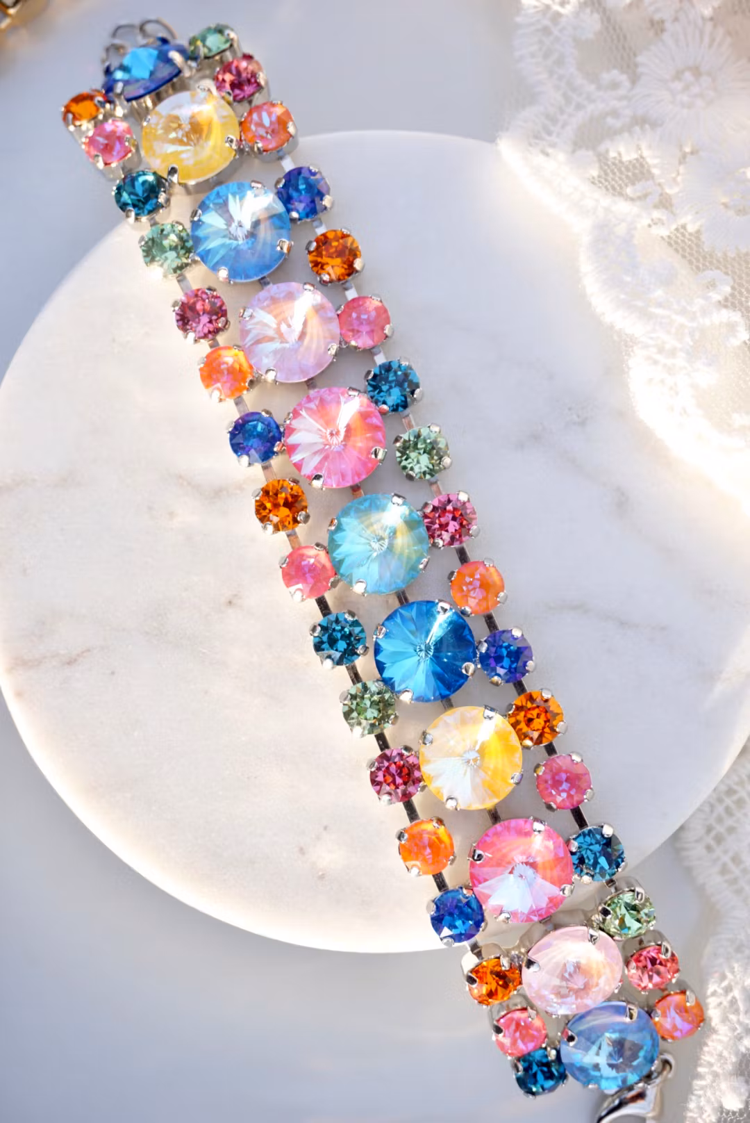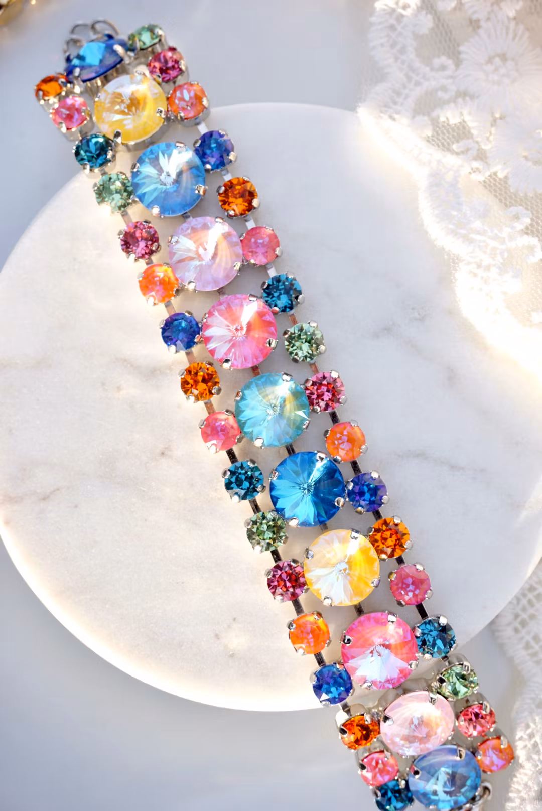Adriana armbånd 0,- 1 430,- Produktet finnes dessverre ikke på lager. Fantastiske farger og skinn i dette store armbåndet!Rhodiuminnfatning.Bredde 2,5cm, lengde 17cm pluss ekstralenkeNikkelfritt Flere populære produkter Anna Armbånd 630,- Elvira armbånd 590,- Zerlina armbånd 590,- Armbånd Utsolgt Fantasiarmbånd 3 Utsolgt Carmen armbånd, alle farger 680,-