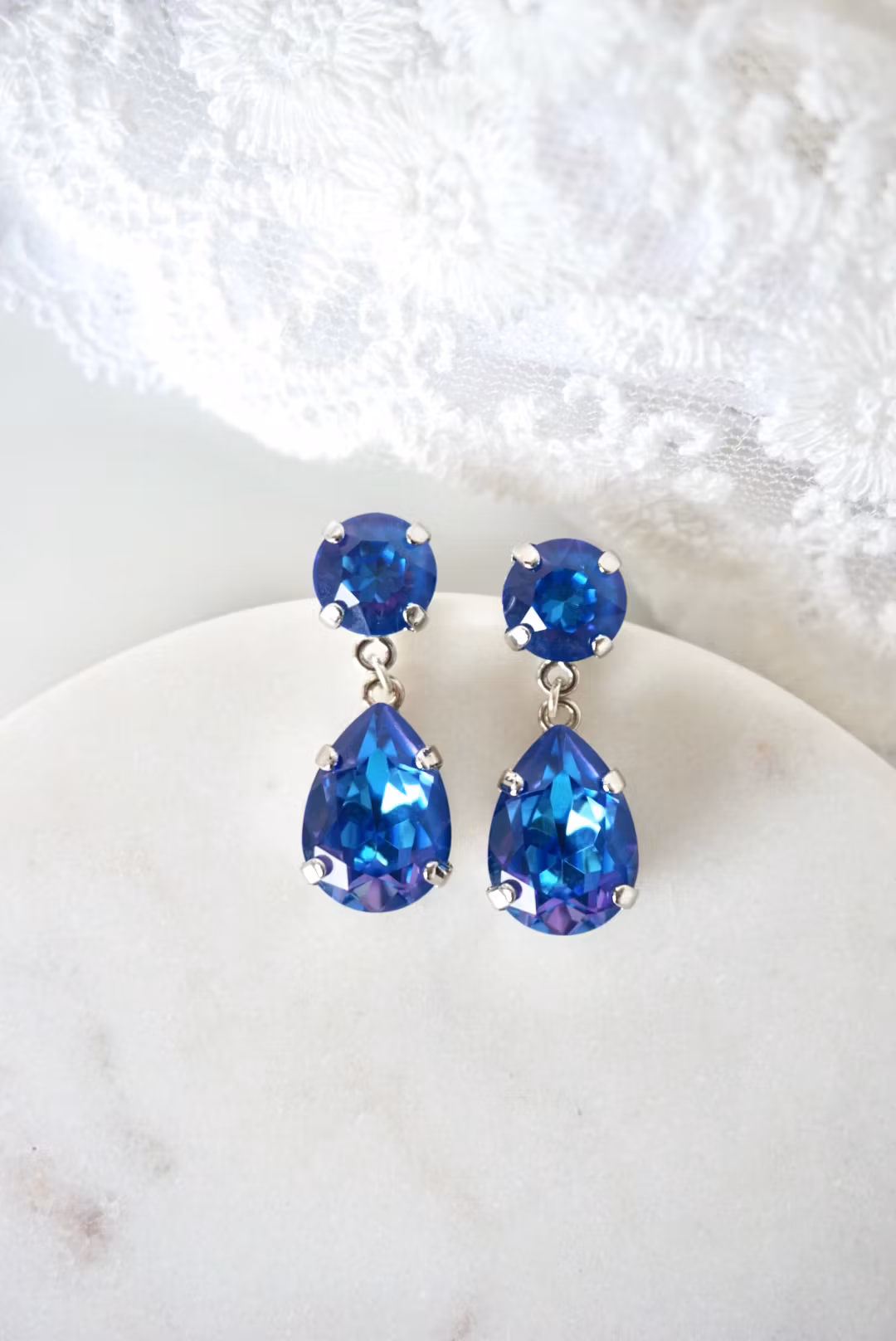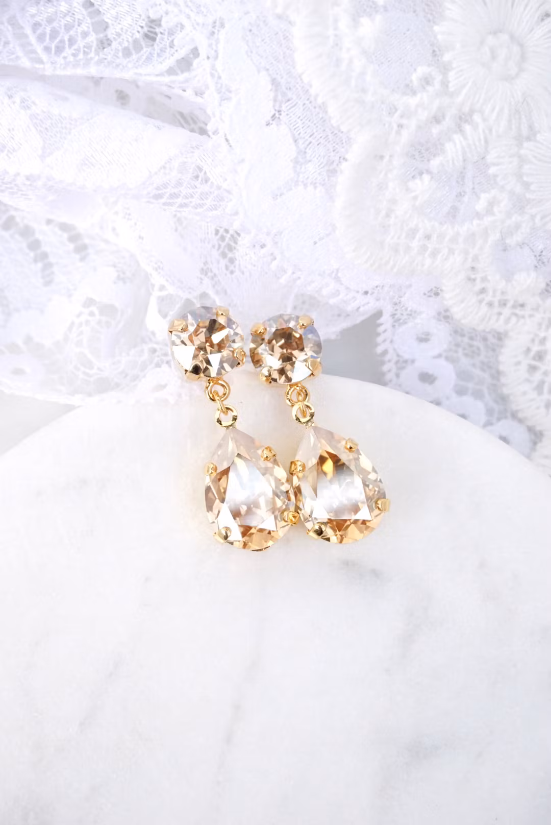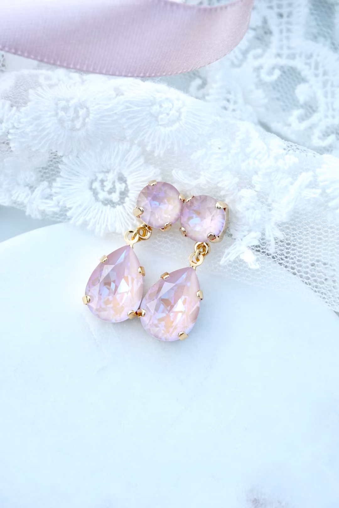 Her er Musetta med klips bak. Se ‘Musetta øredobber’ for flere forslag til farger, denne kan lages med mange forskjellige! På bildet ser du gull m/Golden Shadow, rhodium med Dusty Pink delite, pluss noen andre forslag.