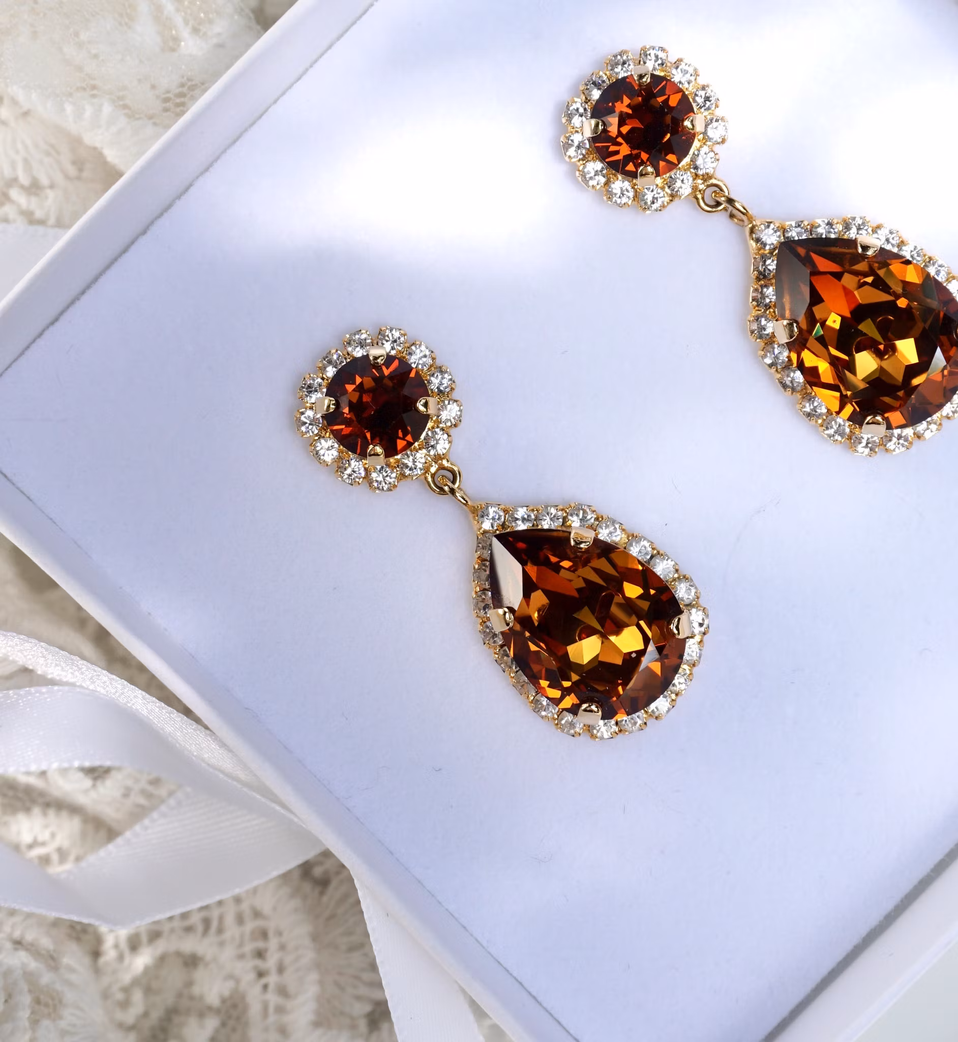 Det blir nesten ikke mere bling enn dette, store dråpekrystaller med skinnende bittesmå krystaller rundt kantene. Alt er håndlaget.