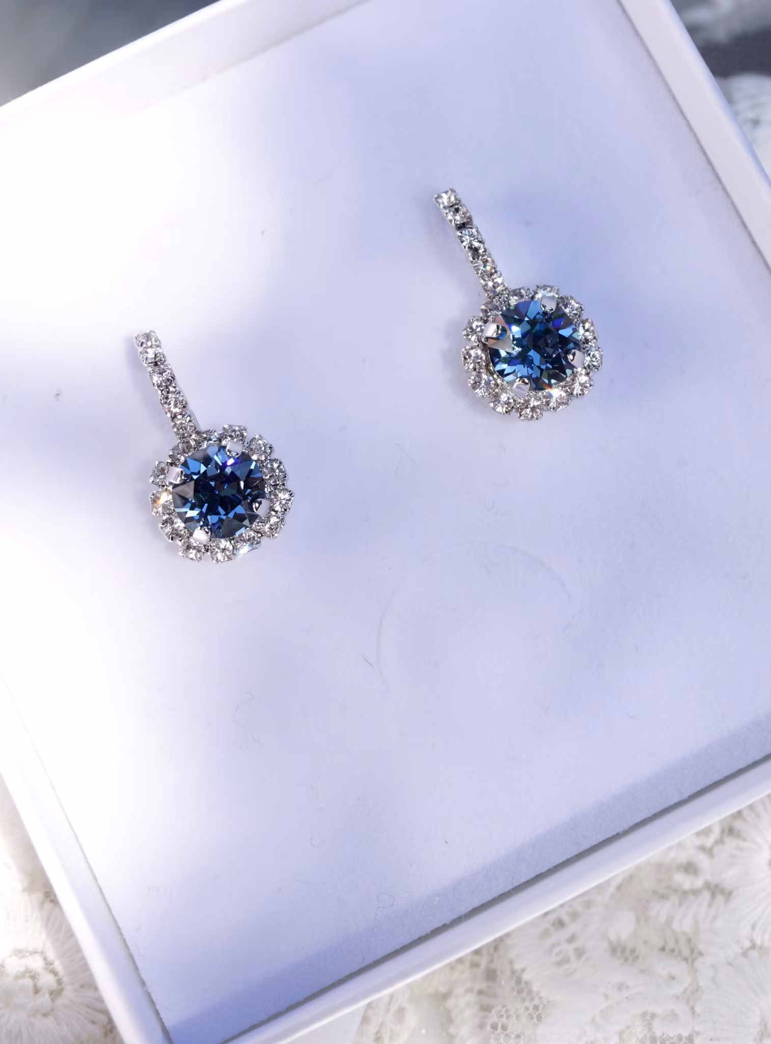 Vakre skatter i rhodium! Kanskje ‘something blue‘ til brud, eller hvilken som helst annen farge til en dag du vil skinne litt ekstra?