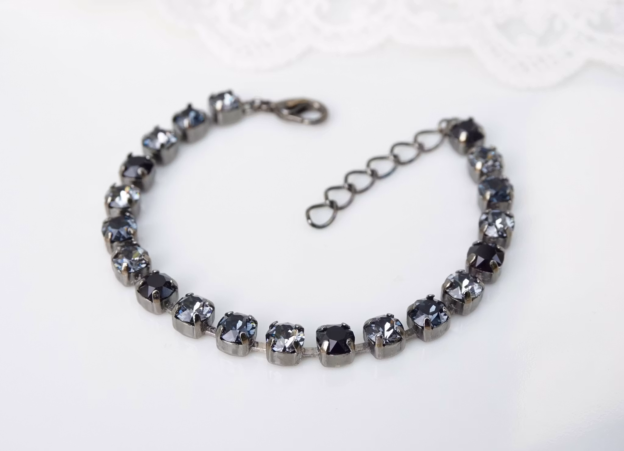 Elegant i sort innfatning og krystaller i mørk grått og sort!
