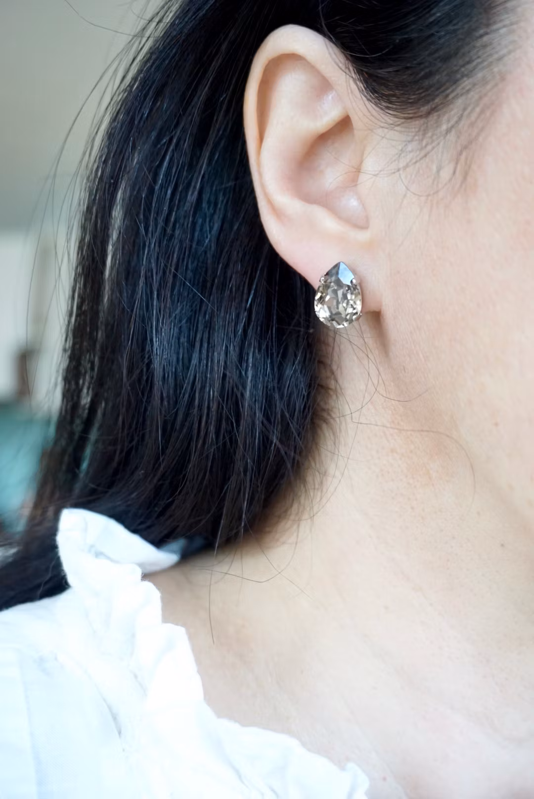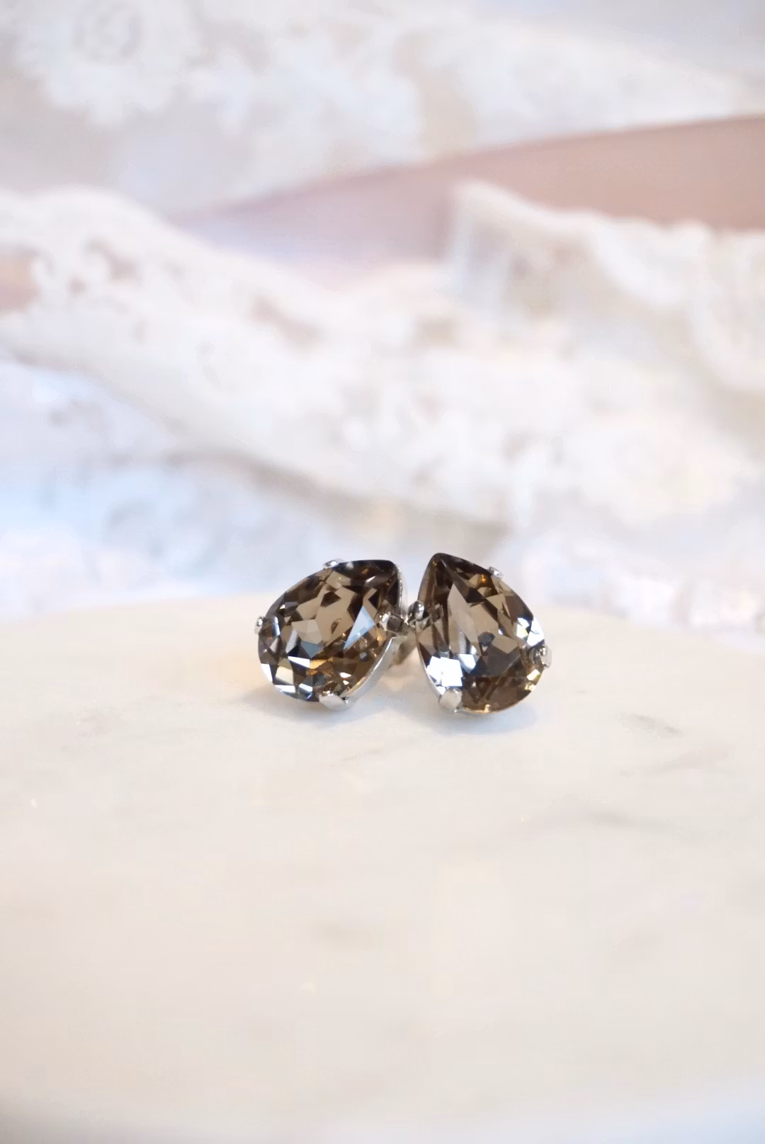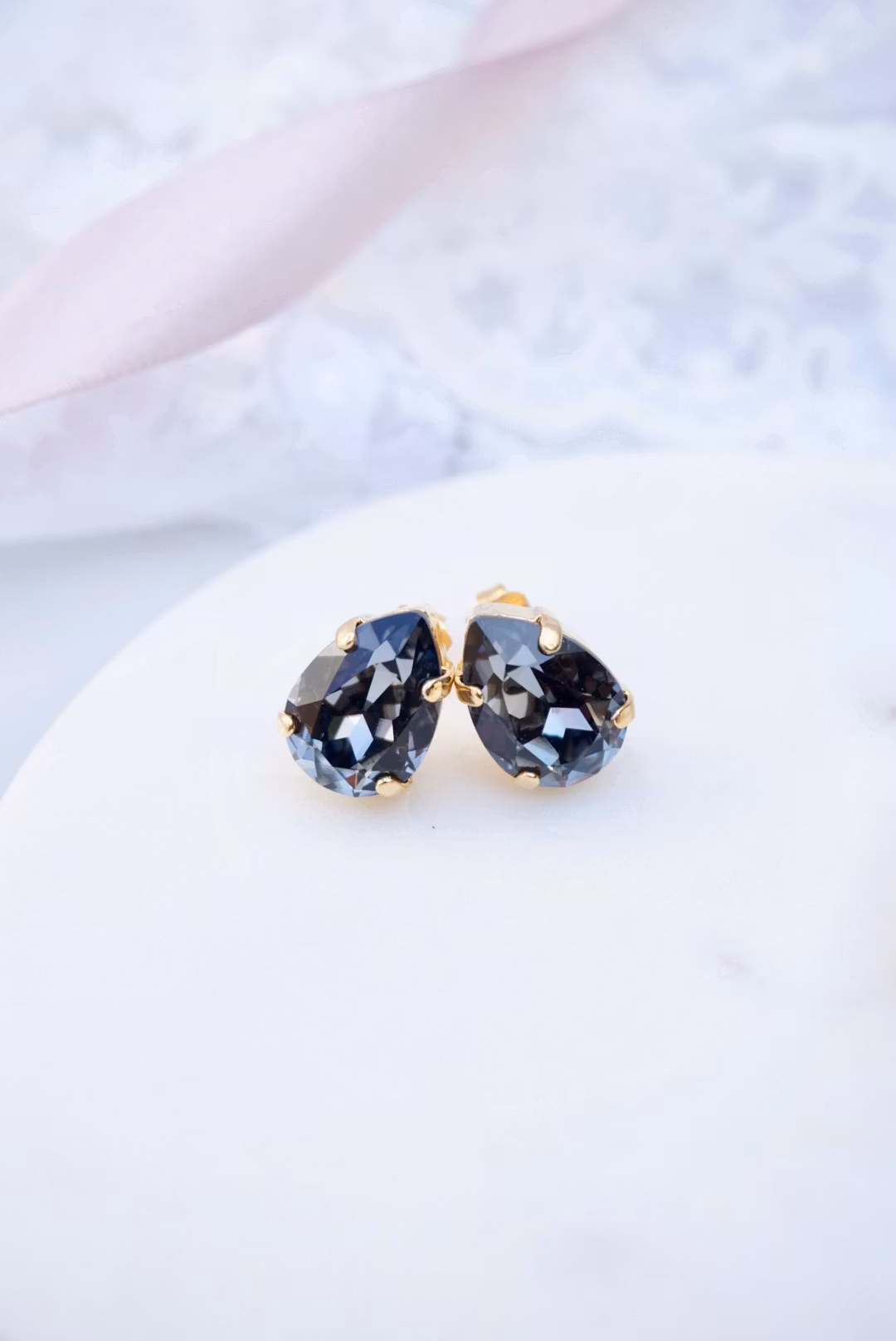 Søte krystallstuds med pæreform. Krystallen måler 14x10mm. Velg mellom forskjellige varianter!