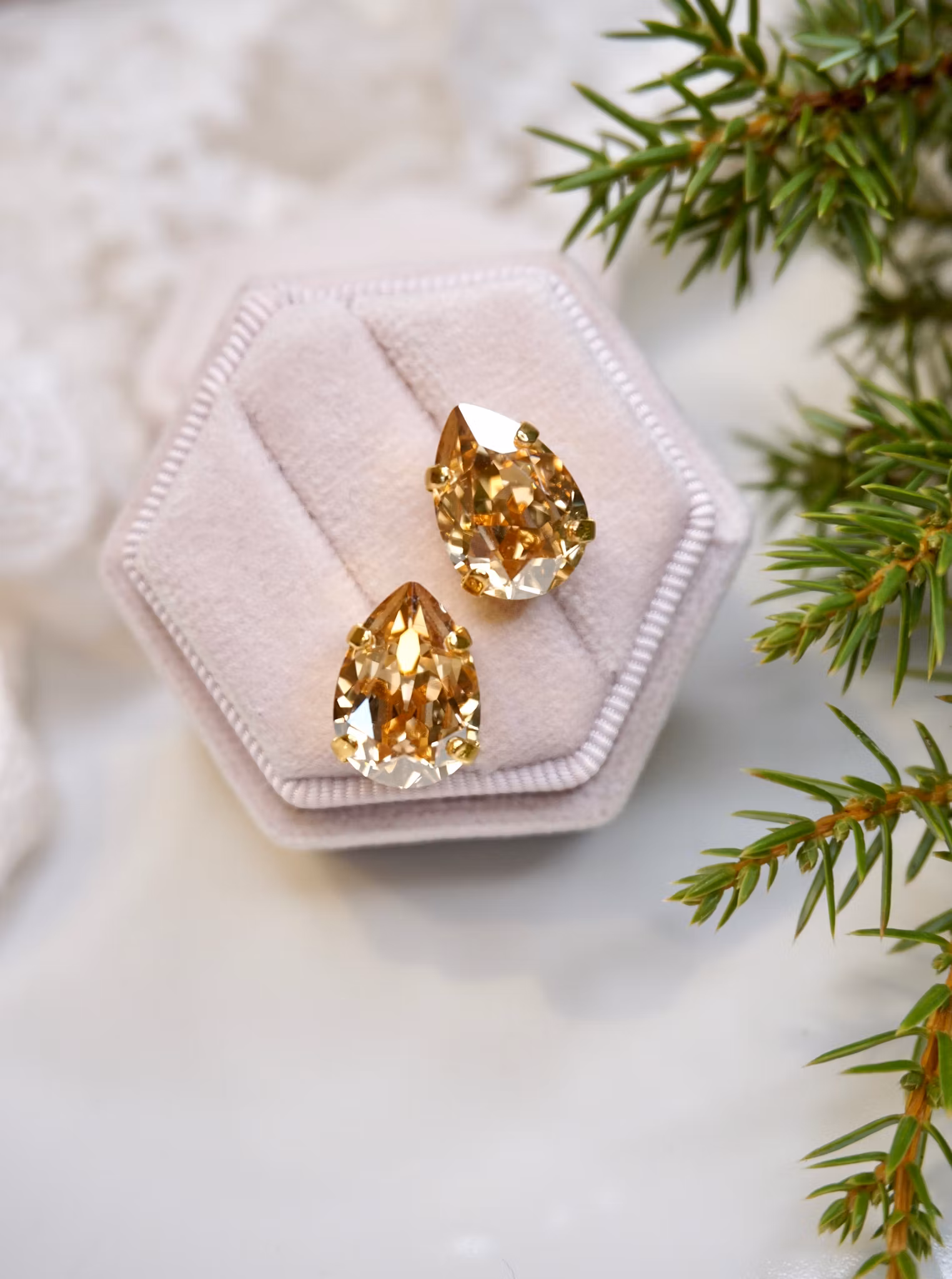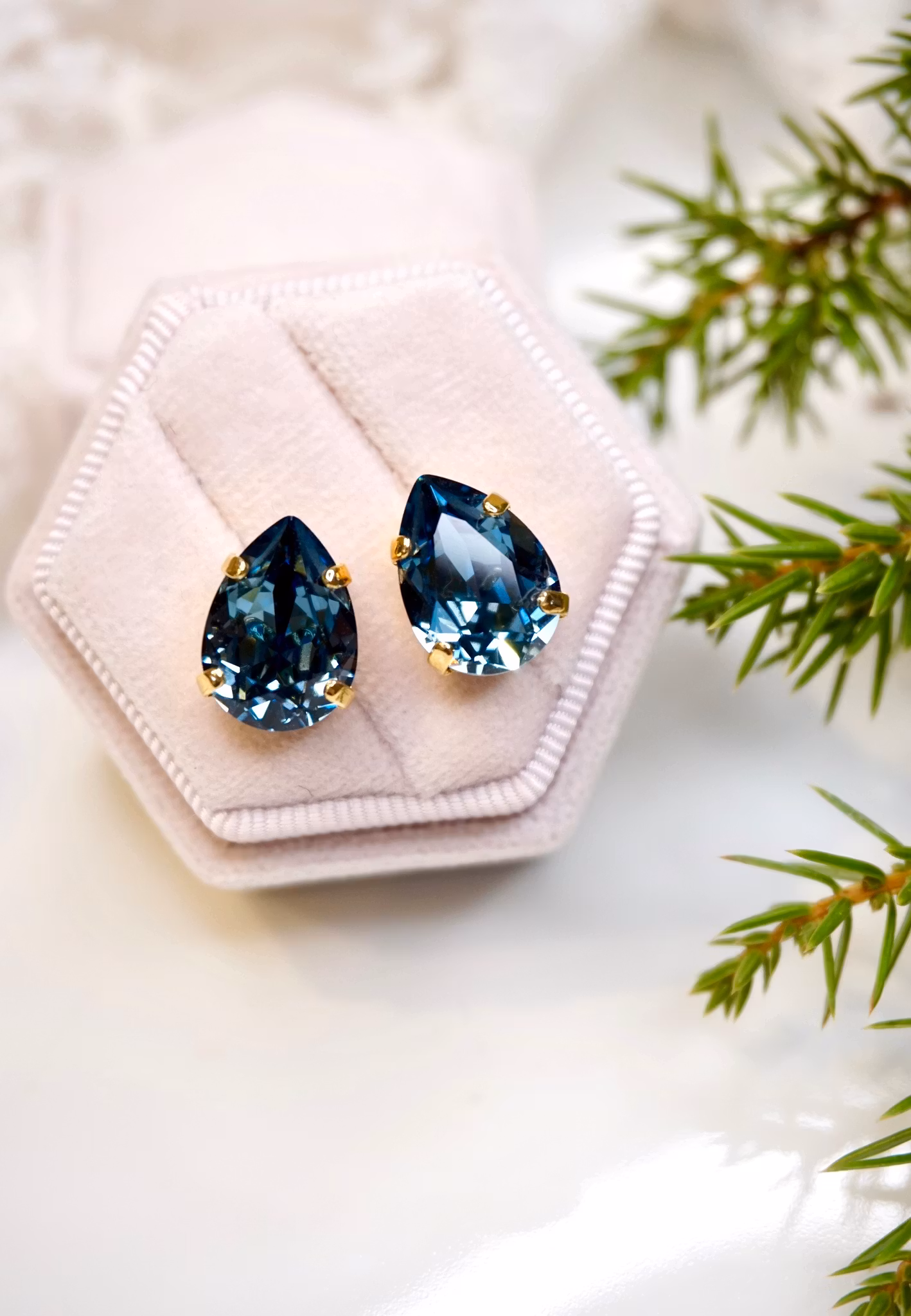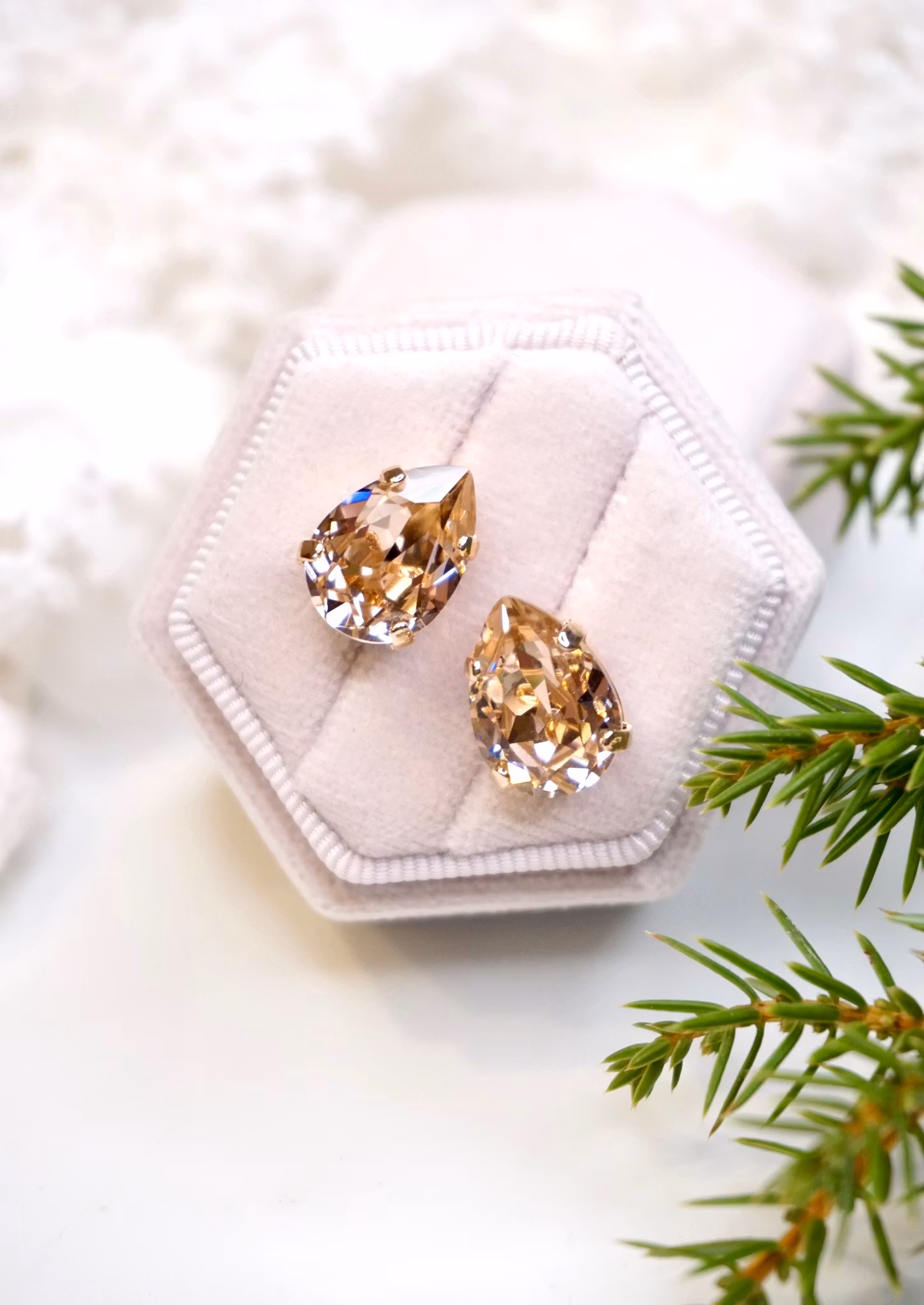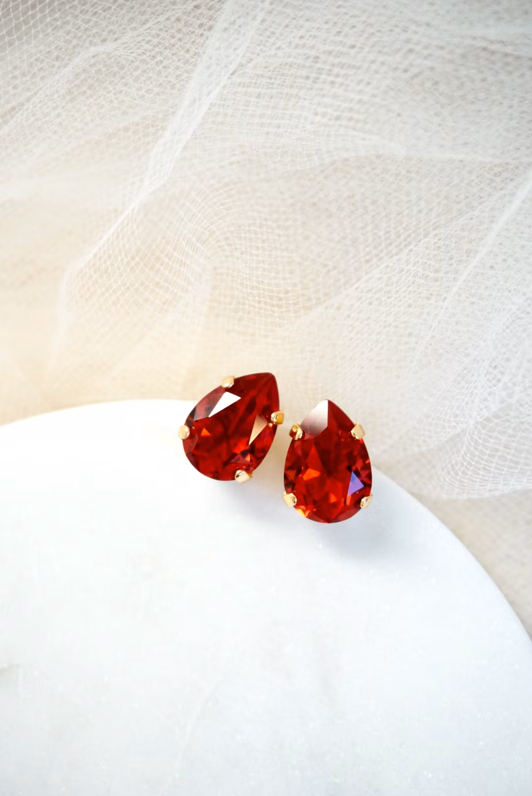 Søte krystallstuds med pæreform. Krystallen måler 14x10mm. Velg mellom forskjellige varianter!