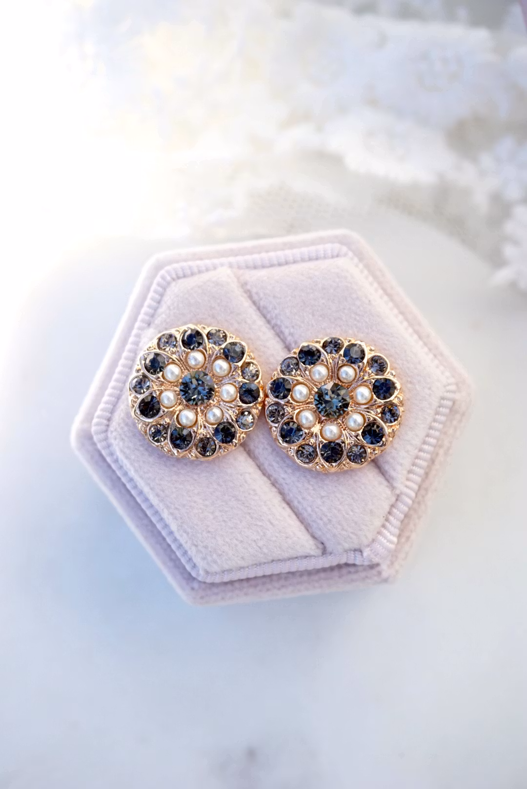 Øredobber 0,- 440,- Produktet finnes dessverre ikke på lager. Søte øredobber! Laget i rosegull med grå krystaller og perler. 1,5 cm diameterNikkelfritt Flere populære produkter Tosca øredobber 1 290,- Luksus Carmen XL Øredobber, rhodium 710,- Ariadne øredobber, gull m/farge Utsolgt Lange vårøredobber 830,- Euridice øredobber 790,- Bella donna øredobber 600,-
