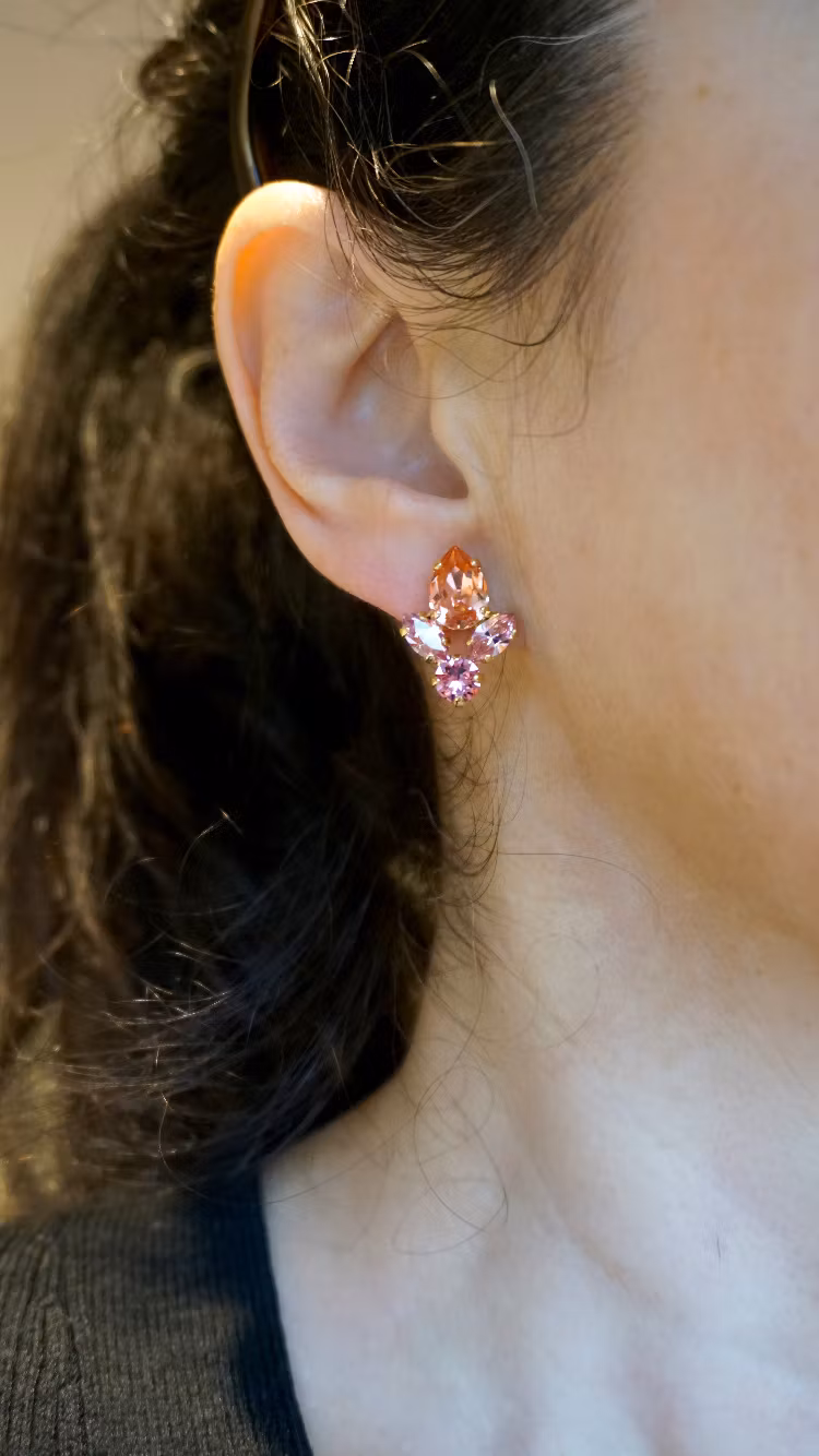 Søt og liten øredobb med krystaller i blå blanding og rhodiuminnfatning.